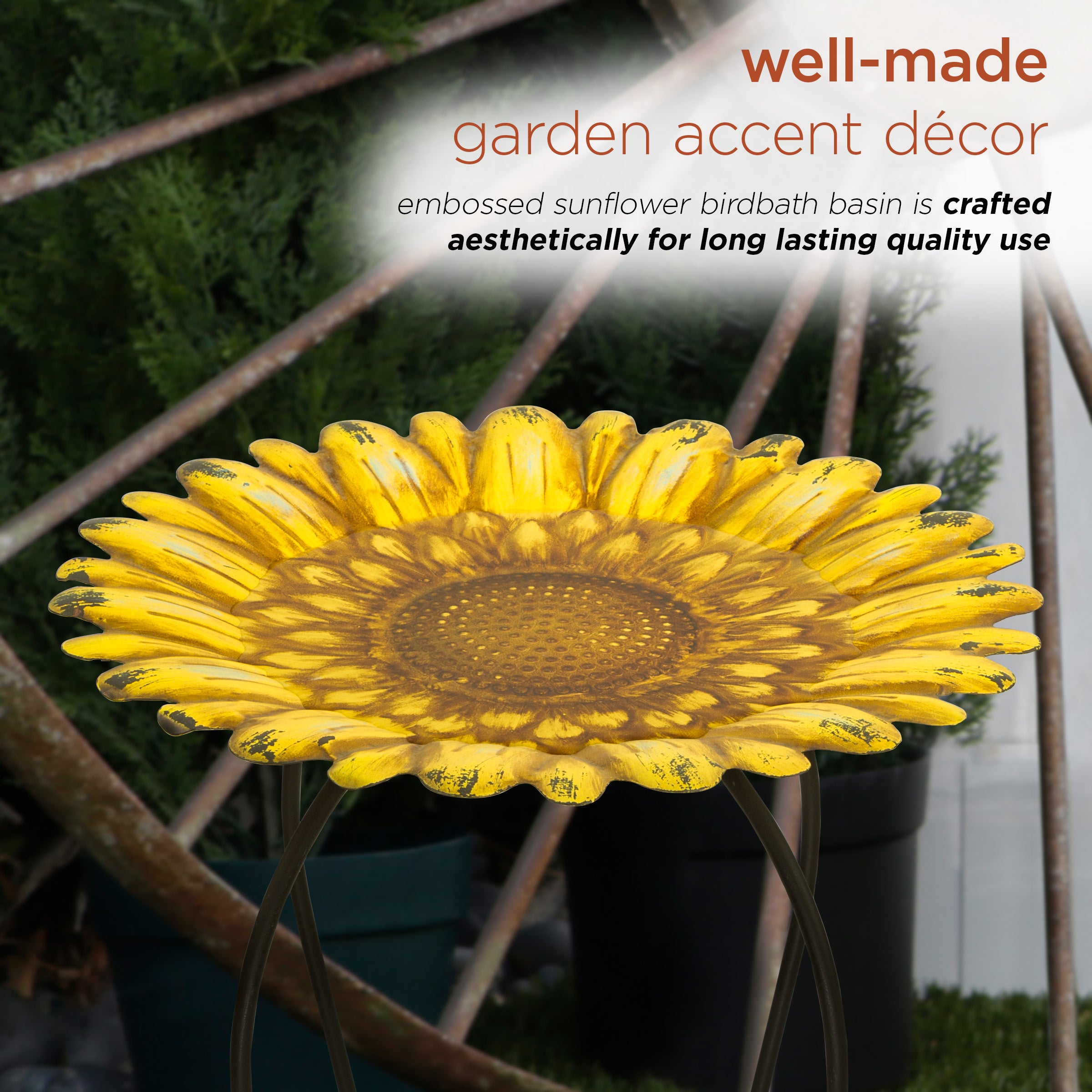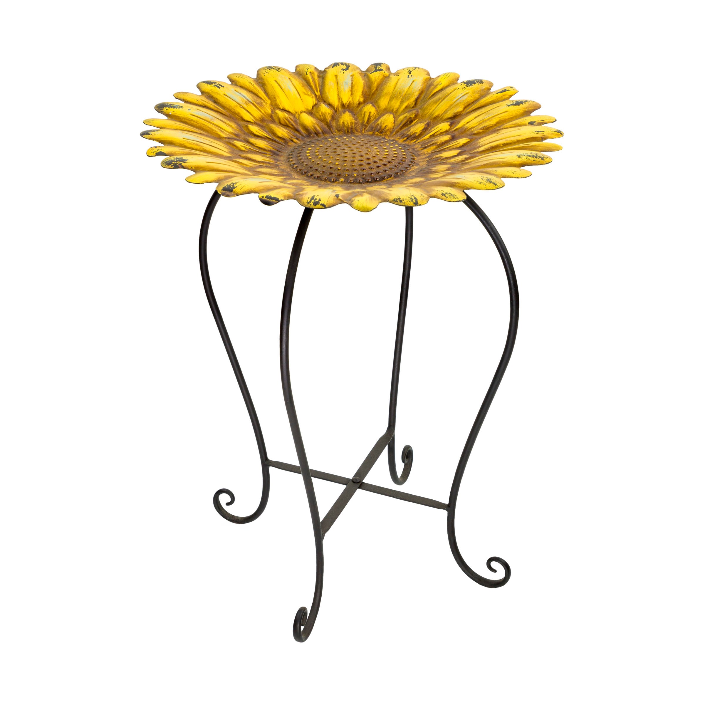 Embossed Metal Sunflower Birdbath