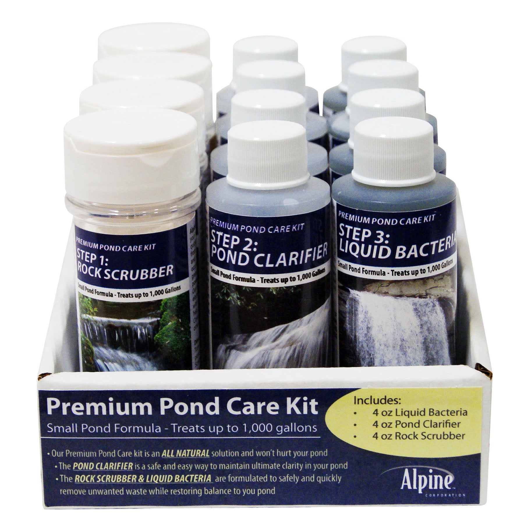 Alpine Corporation 7"L Small Three Step Pond Cleaner - Set of 3 Bottles