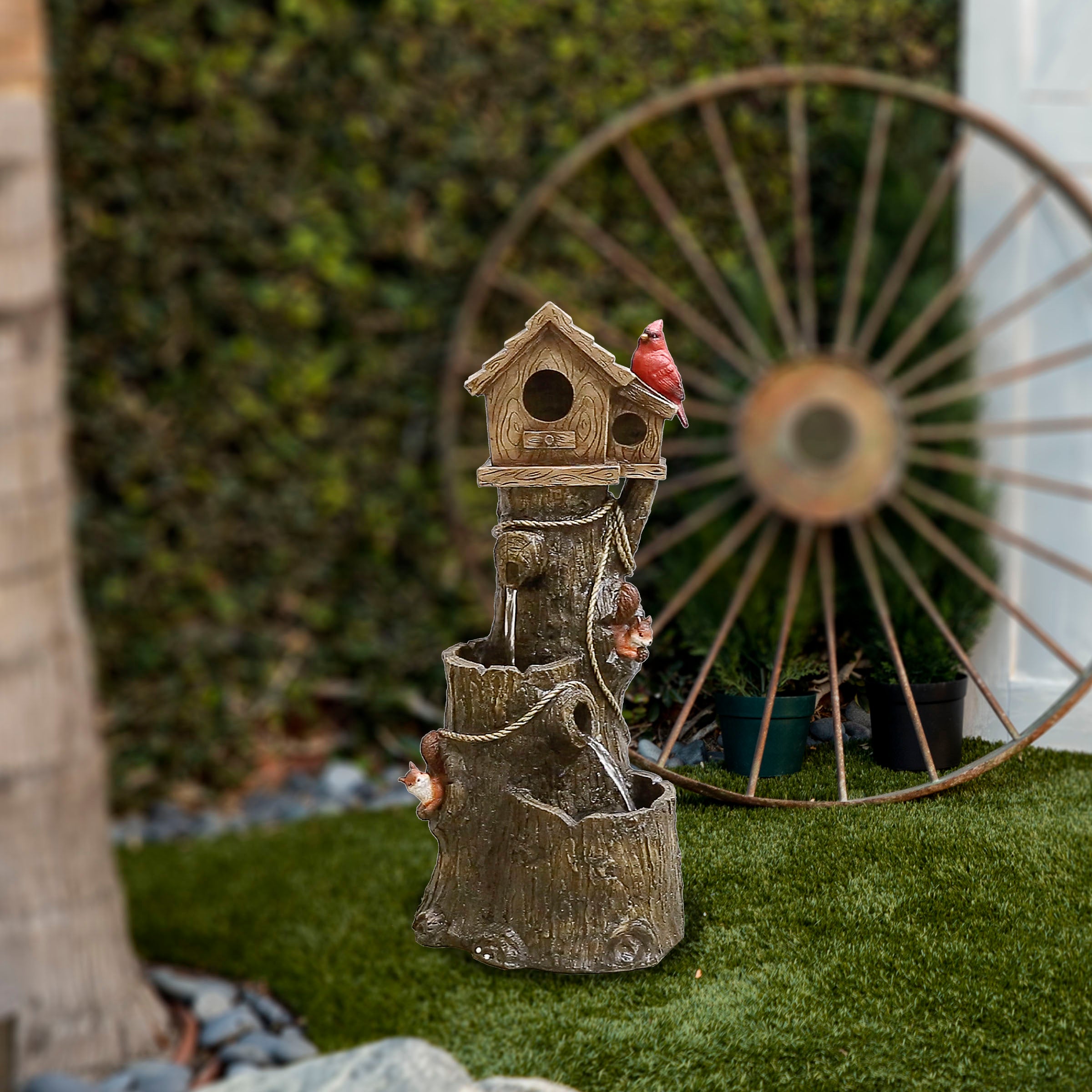 Birdhouse with Cardinal Tree Fountain