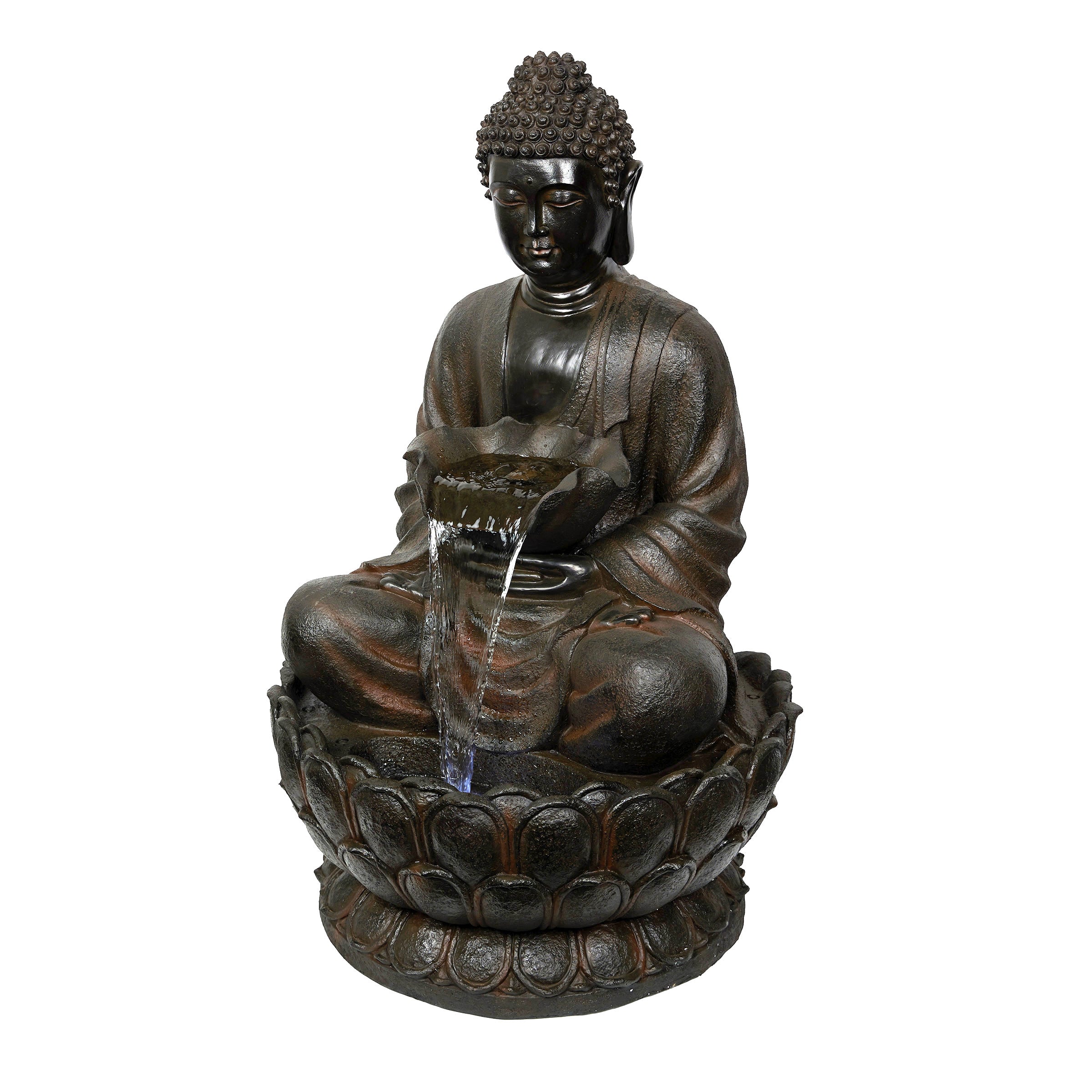 Brown Buddha Fountain with LED Lights