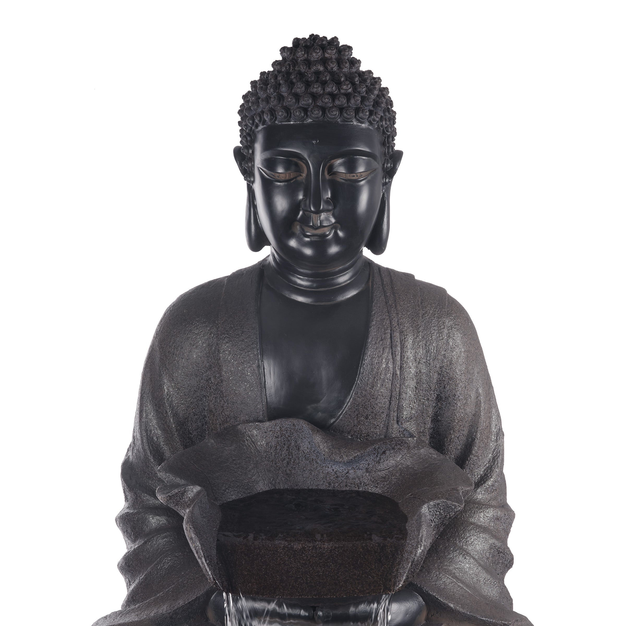 Unplug from the day and meditate to the sound of flowing water with Alpine Corporation’s 53" tall Outdoor Buddha Zen Water Fountain with LED Lights. This modern Zen style fountain statue provides a tranquil and soothing addition to your porch or patio. Constructed from durable polystone and fiberglass, the fountain is weatherproof, rust resistant, and resilient and can be used in your home's interior décor or outside. This unique and versatile piece will bring a touch of natural beauty to your outdoor space or wherever you need calmness. Featuring a meditating Buddha with a lotus flower, the fountain has a natural stone carved appearance. Relax to the sounds of the calming natural water flow as it trickles through the fountain. Not only will the fountain provide you with serenity, it will also attract birds to your outdoor area, which in turn promotes healthy gardens. This updated take on the classic fountain provides an elegant addition to your courtyard, patio, or yard, and gives your garden or interior space visual interest with its natural waterfall style. For quick install and convenient operating, the fountain includes all necessary parts and a pump, to begin creating an outdoor oasis. This fountain measures 35"L x 34"W x 53"H to fit almost any indoor or outdoor space and includes a two year manufacturer's Support from date of purchase.