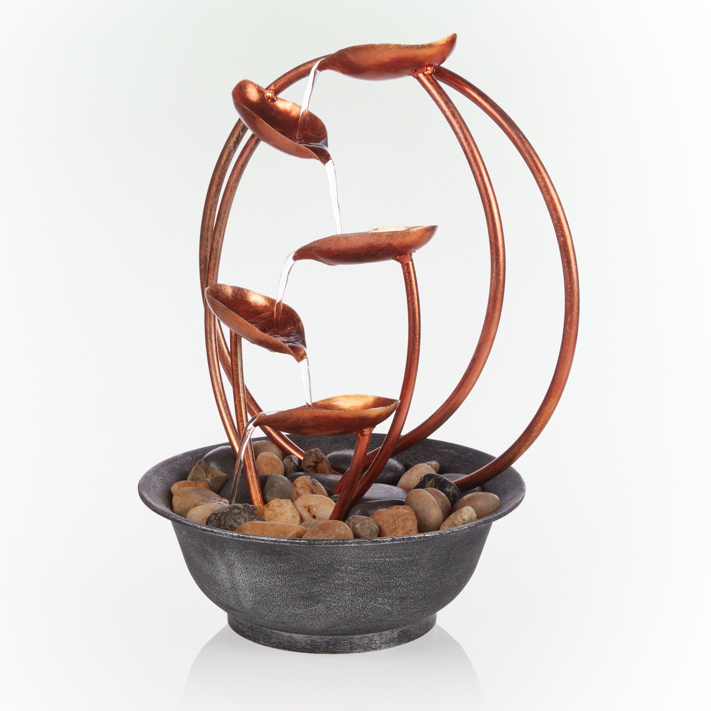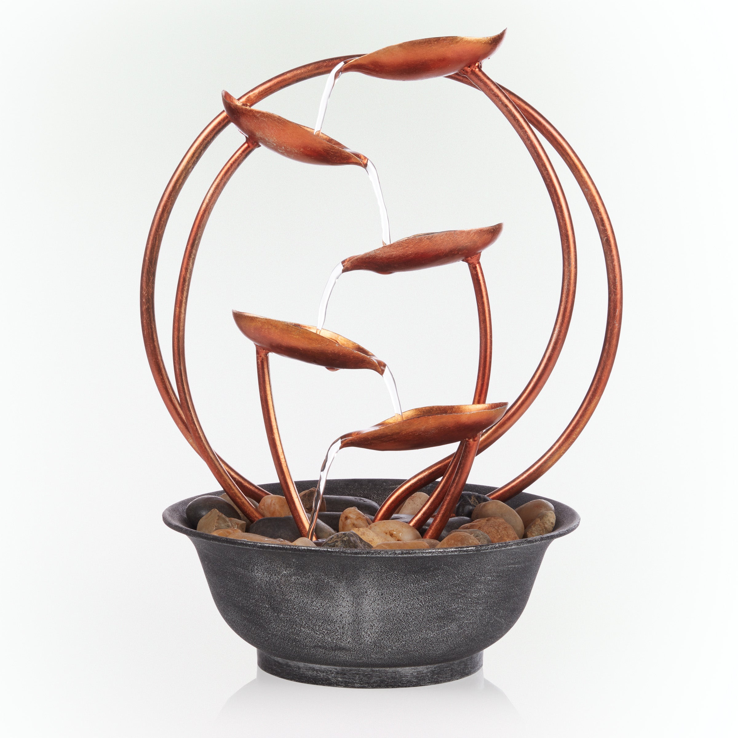 Metal Leaf Multi-tier Tabletop Fountain with Stones