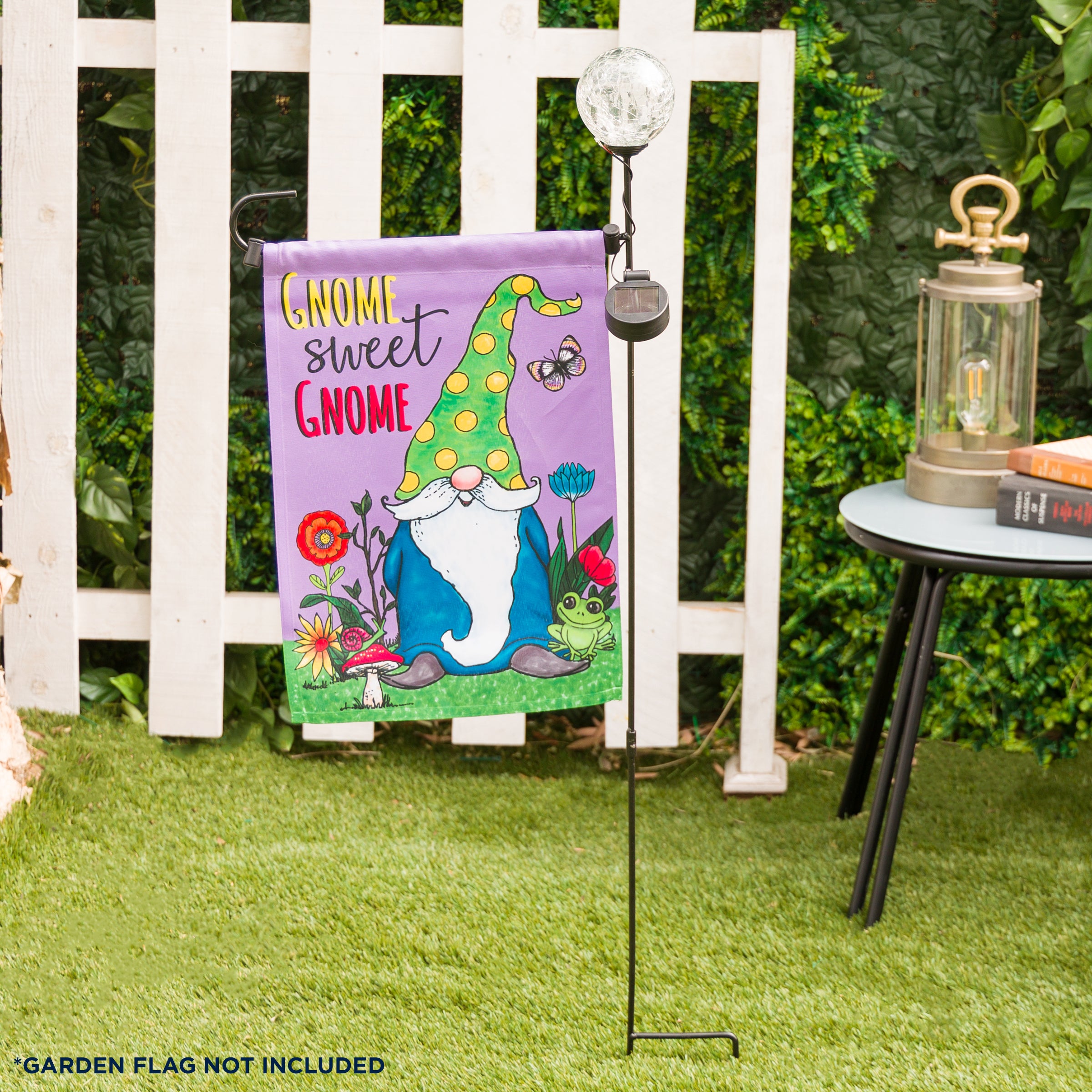 Solar Lighted Globe Garden Flag Holder Stake