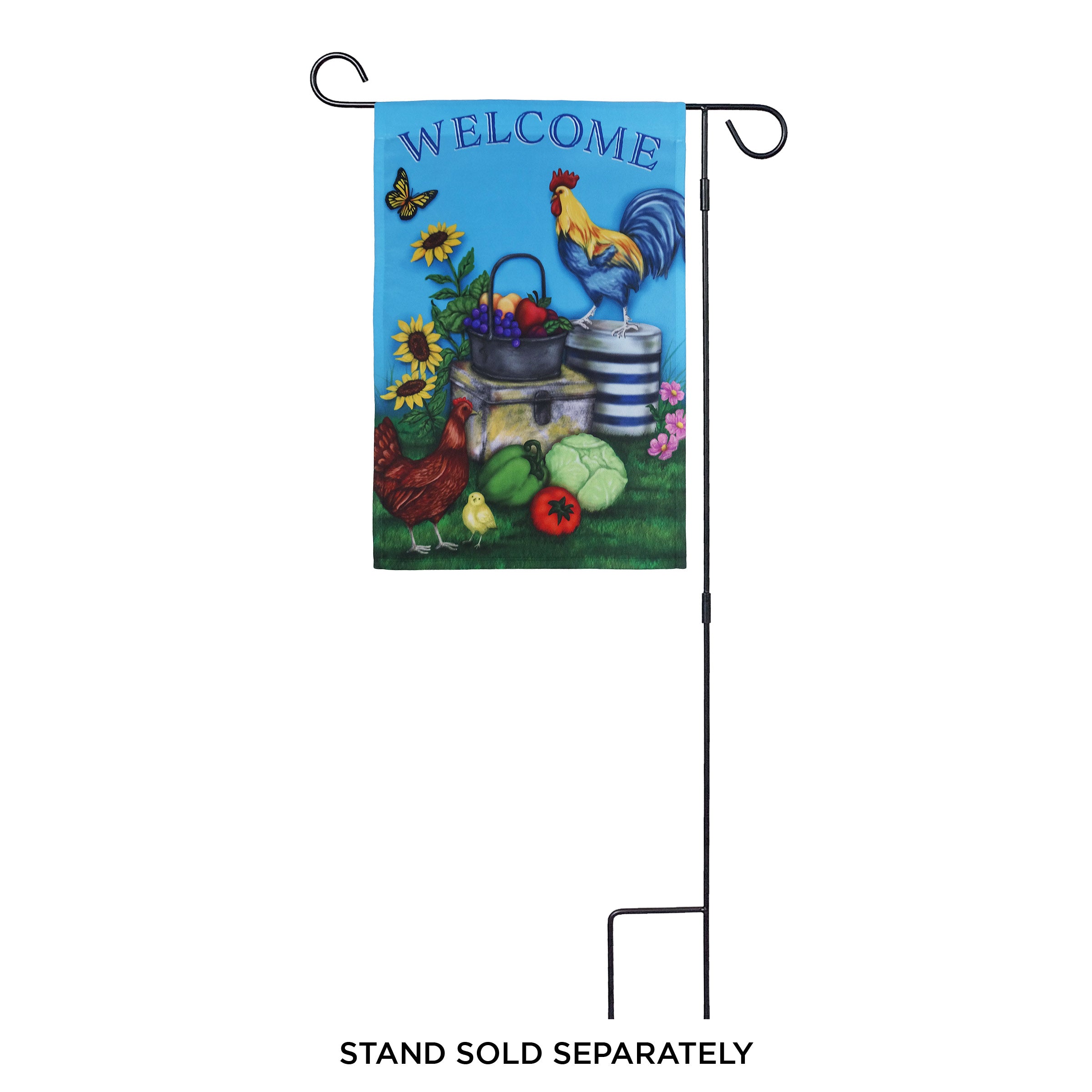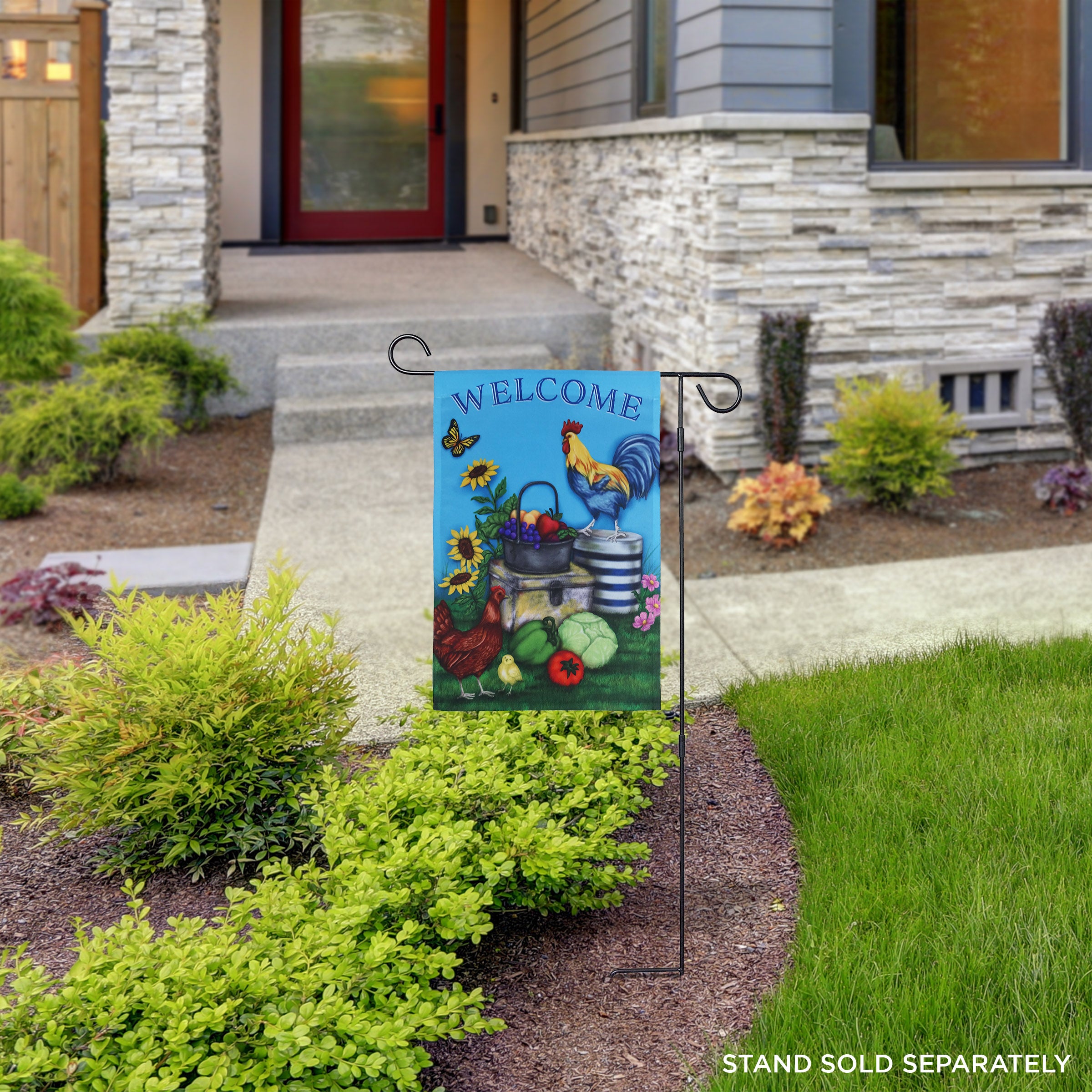 Add a warm and rustic touch to your outdoor space. Featuring a vibrant rooster design and a friendly welcome message, this charming flag brings farmhouse flair to gardens, porches, and walkways. Perfect for greeting guests with country-inspired style.