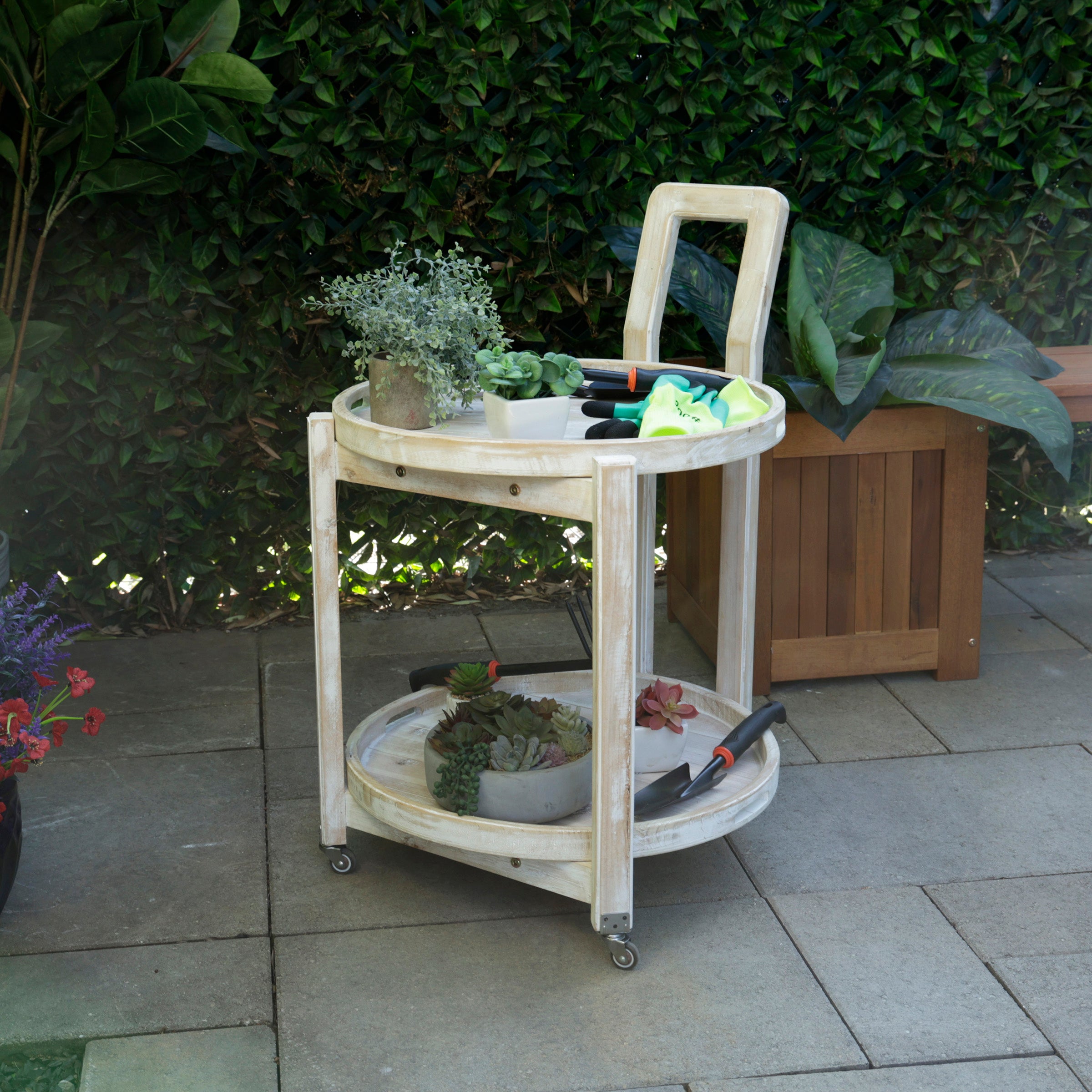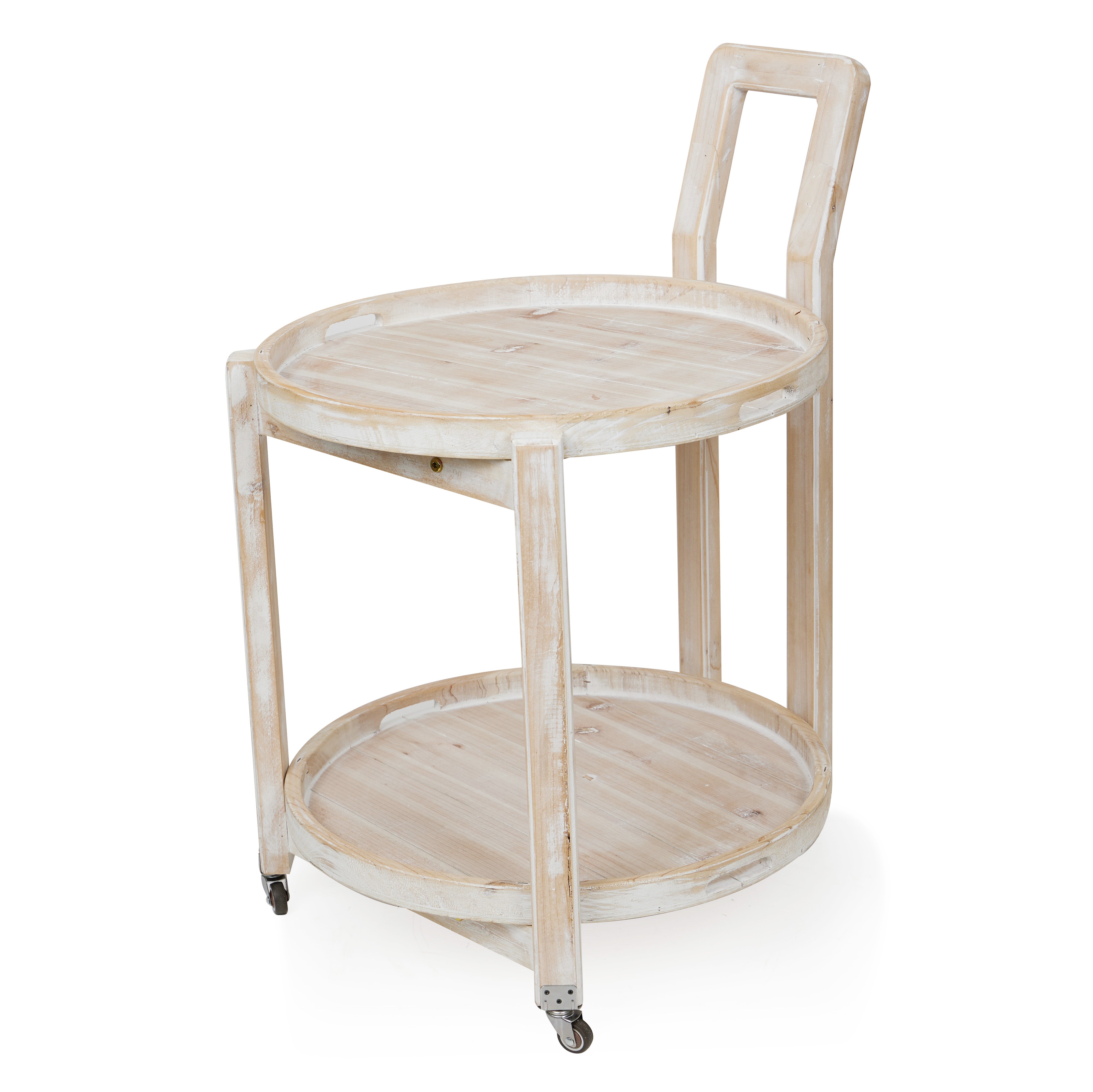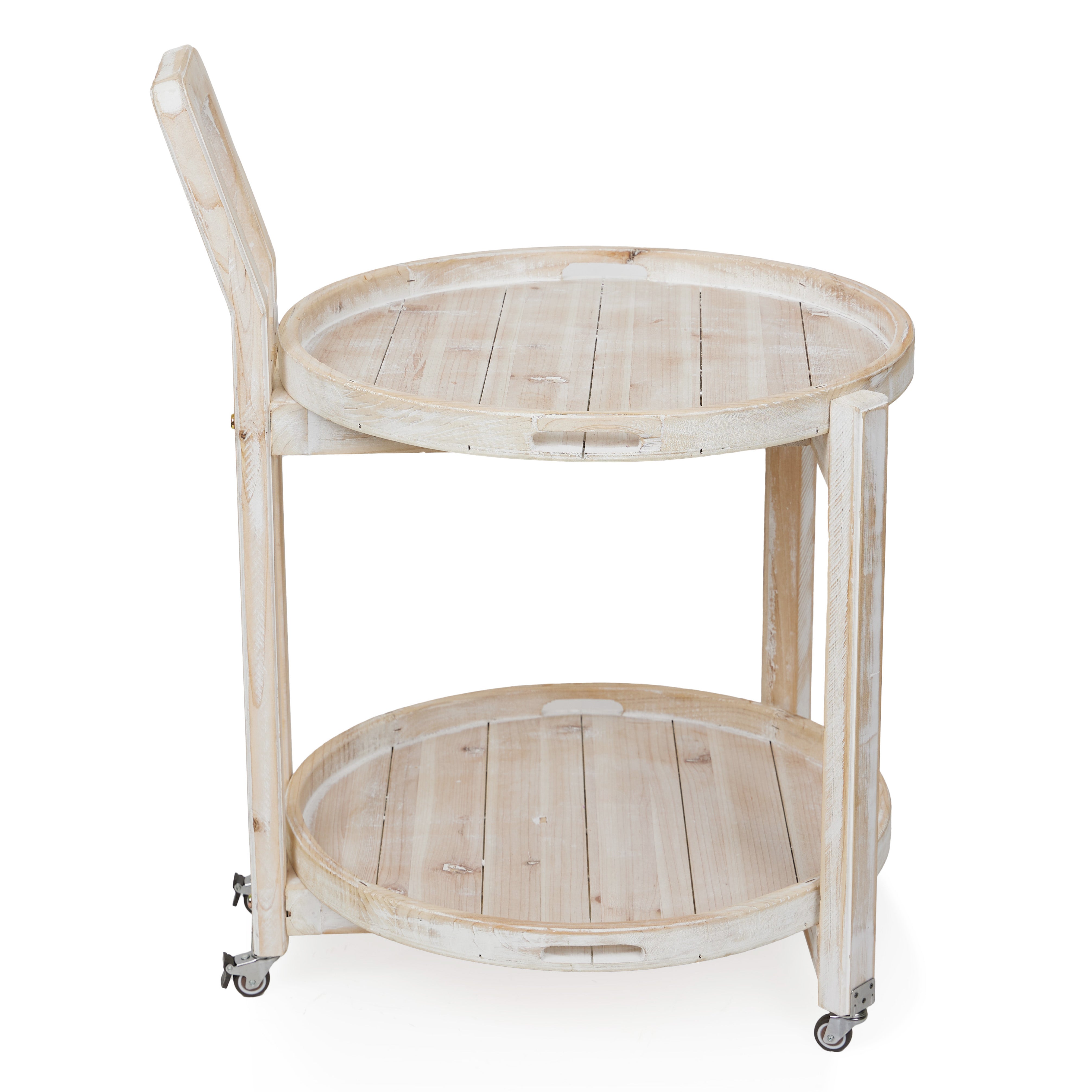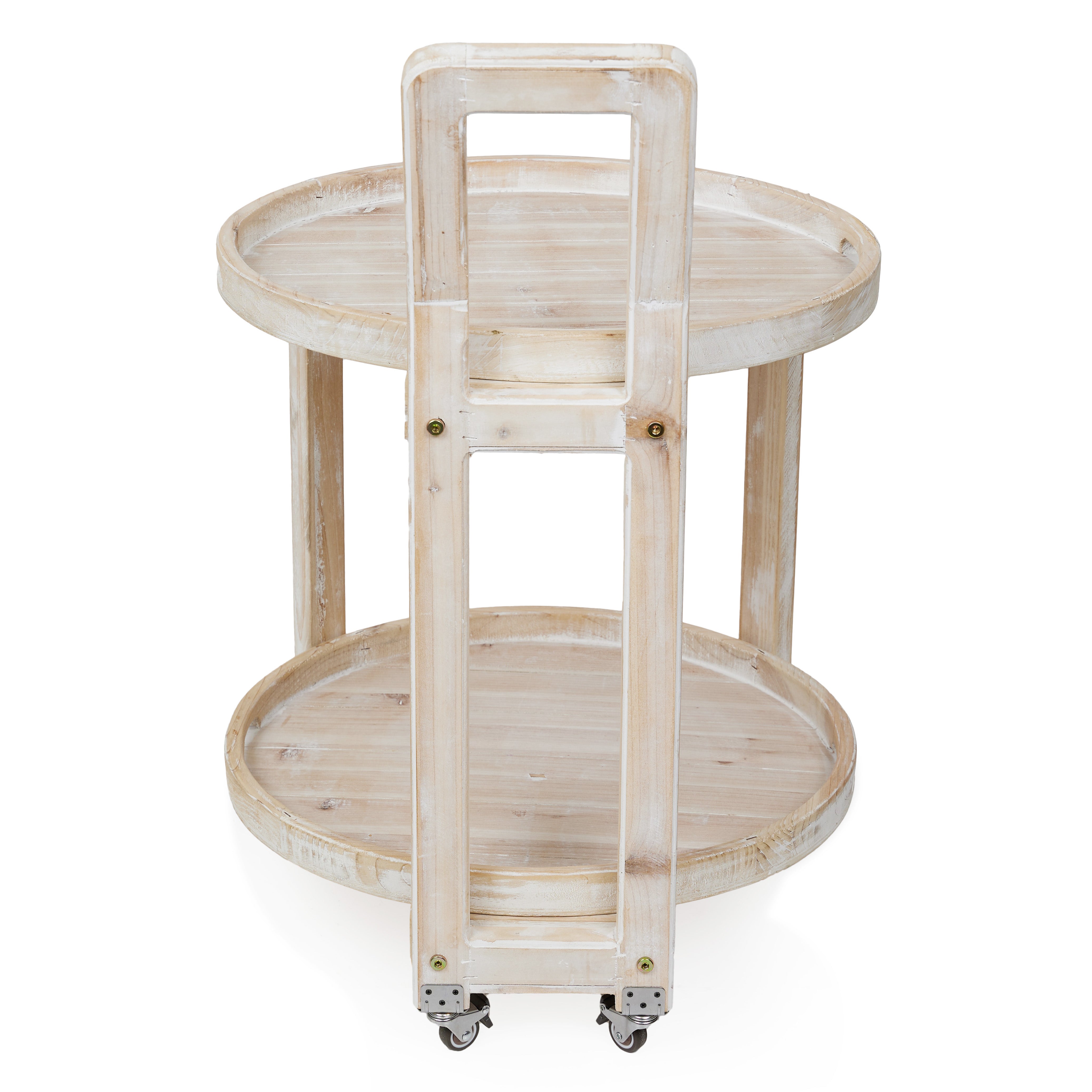 Wooden 2-Tier Round Push Cart Storage with Wheels