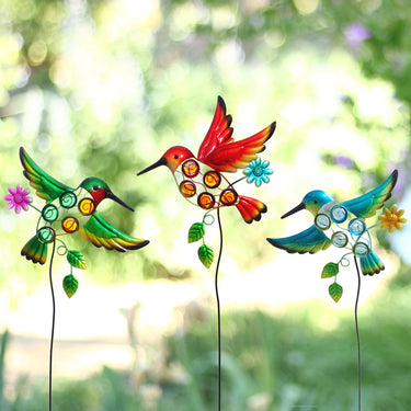 Hummingbird Metal & Glass Garden Stakes - Asstd Display of 12