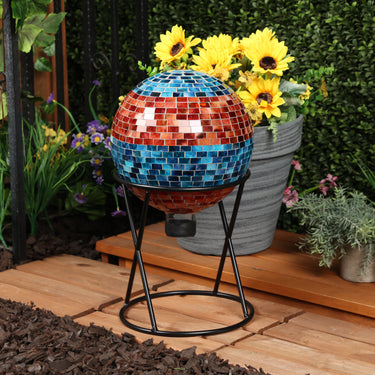 Orange and Turquoise Striped Mosaic Gazing Globe
