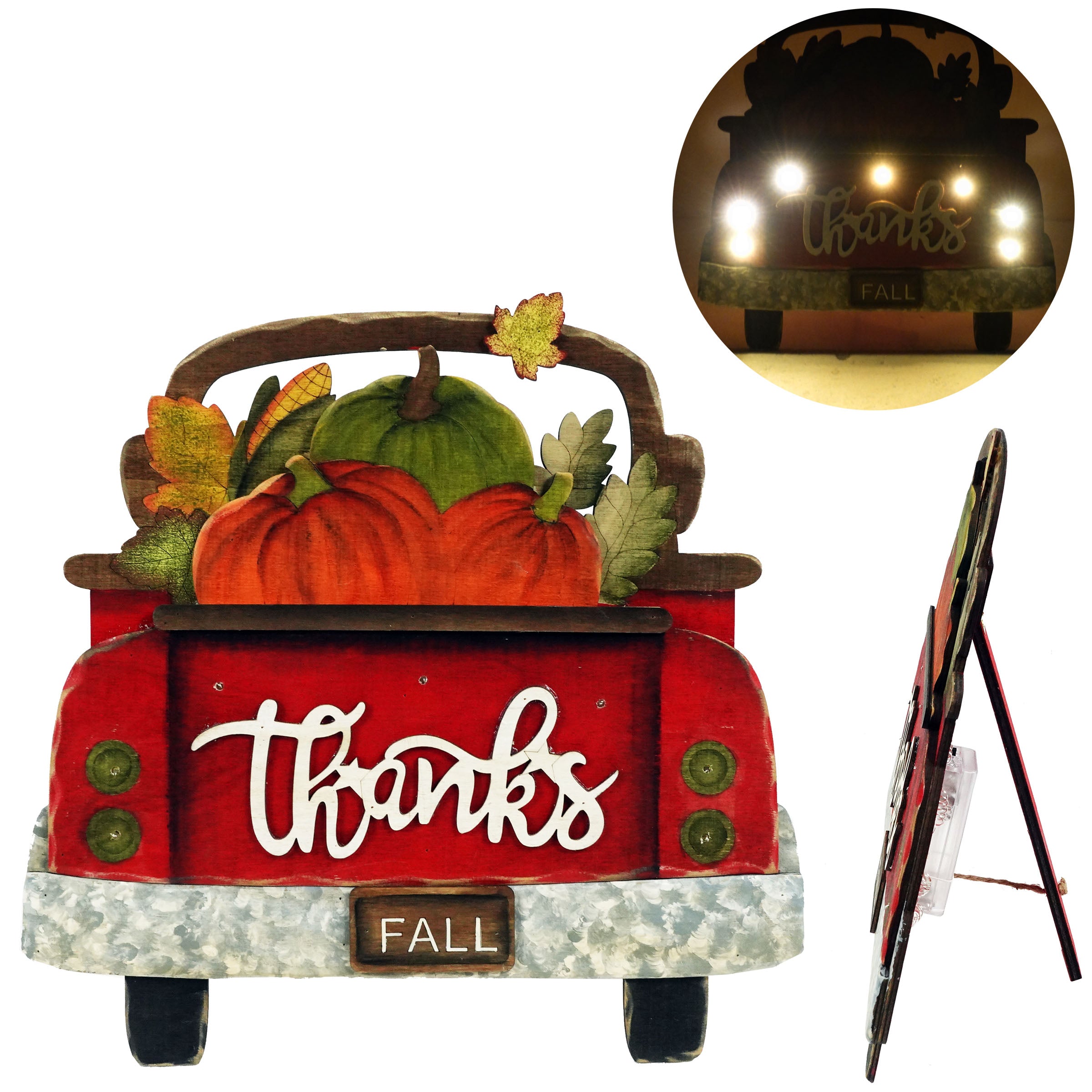 Wooden Harvest "Thanks" Truck Decor With LED Lights