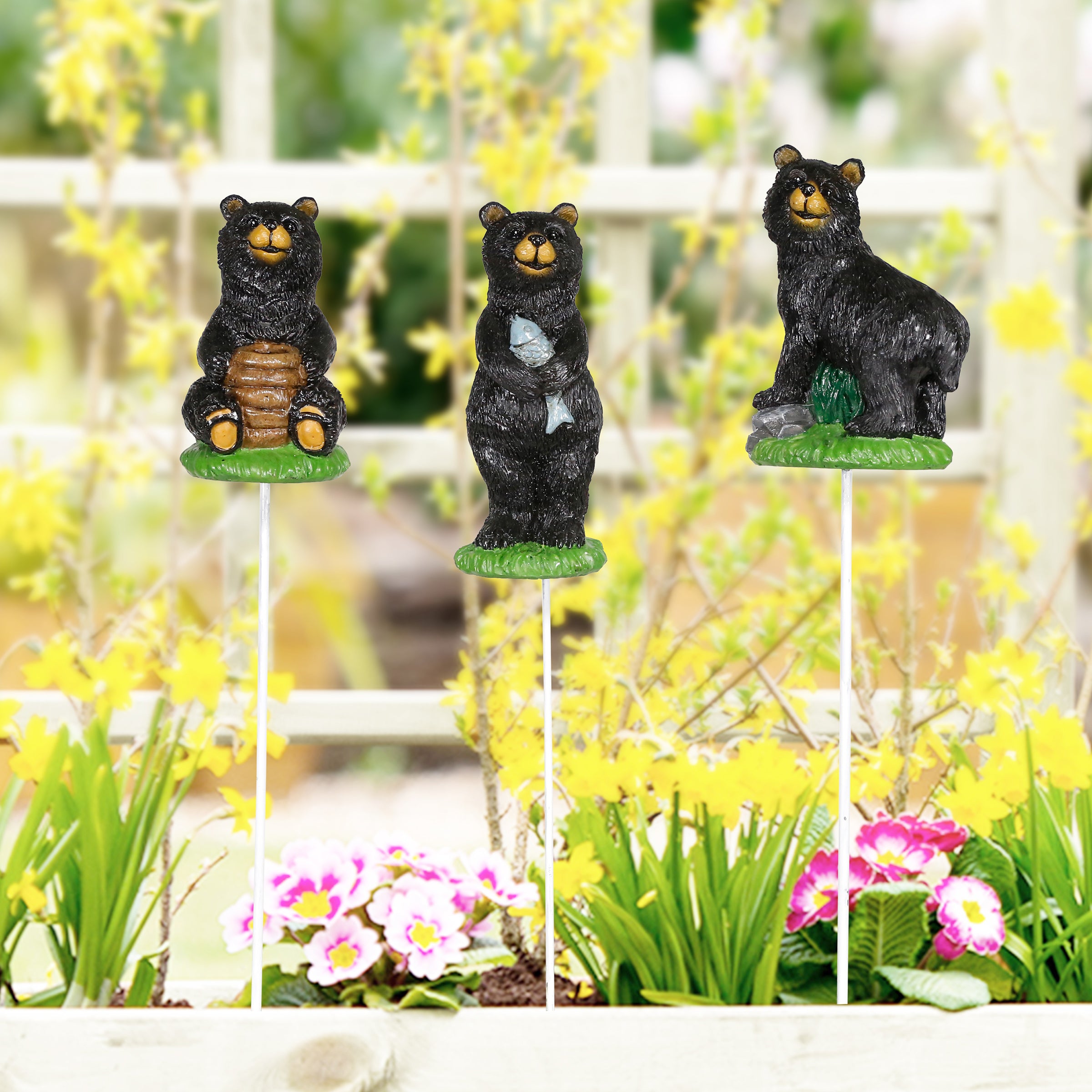 Bring warmth and woodland charm to your potted plants with this Bear Family Pot Sticker. Crafted with detailed artistry, this adorable trio features a parent bear and playful cubs, adding a heartfelt, nature-inspired accent to indoor or outdoor arrangements. The metal stake offers easy placement in pots, planters, or garden beds, while the durable finish ensures lasting beauty season after season. A delightful decorative touch that blends whimsy with refined craftsmanship. Assorted Tray Pack of 12