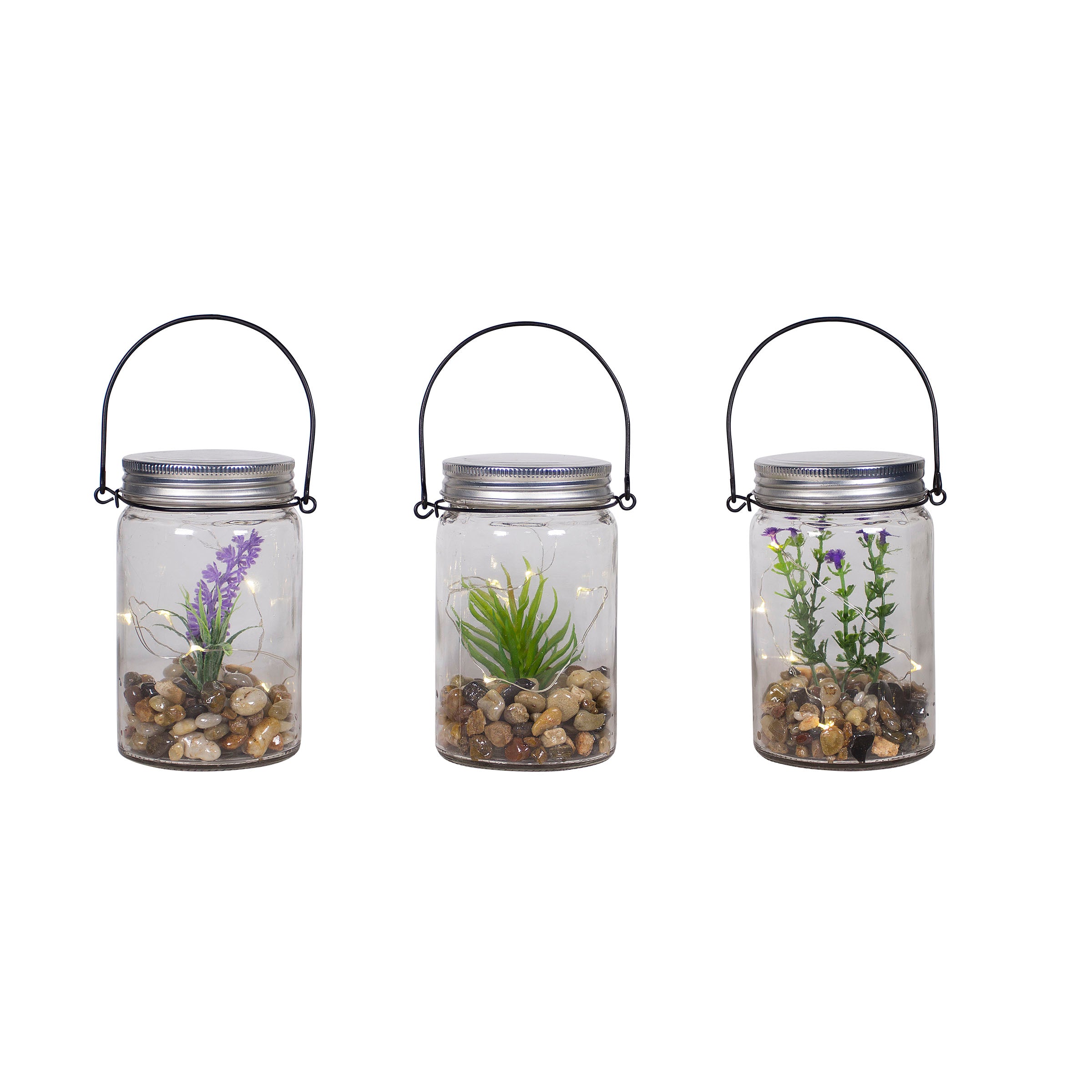 Hanging Succulent Jar LED Lantern - Assorted Tray Pack of 12