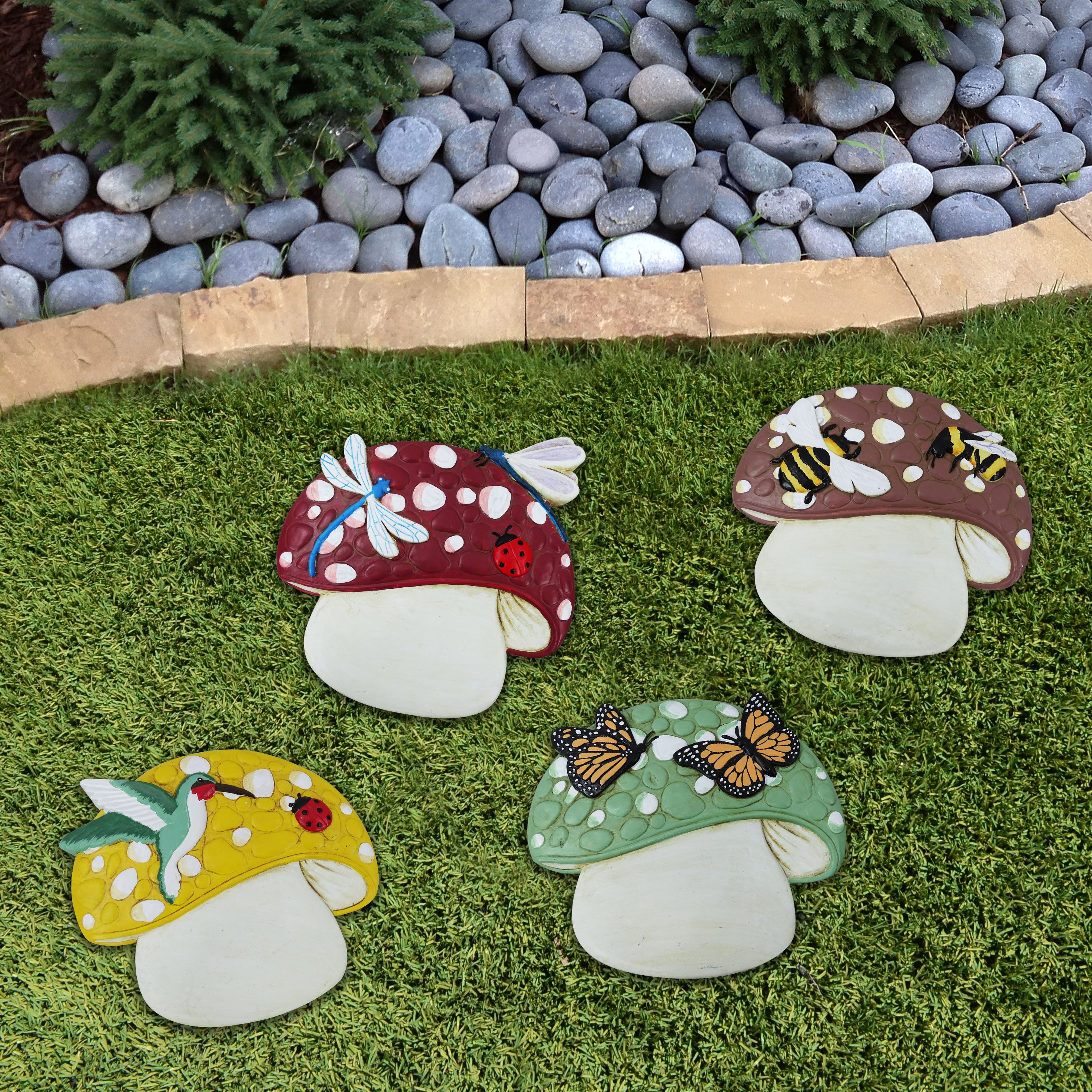 Alpine Corporation 13"L Cement Mushroom Stepping Stone - Assorted Tray Pack of 4
