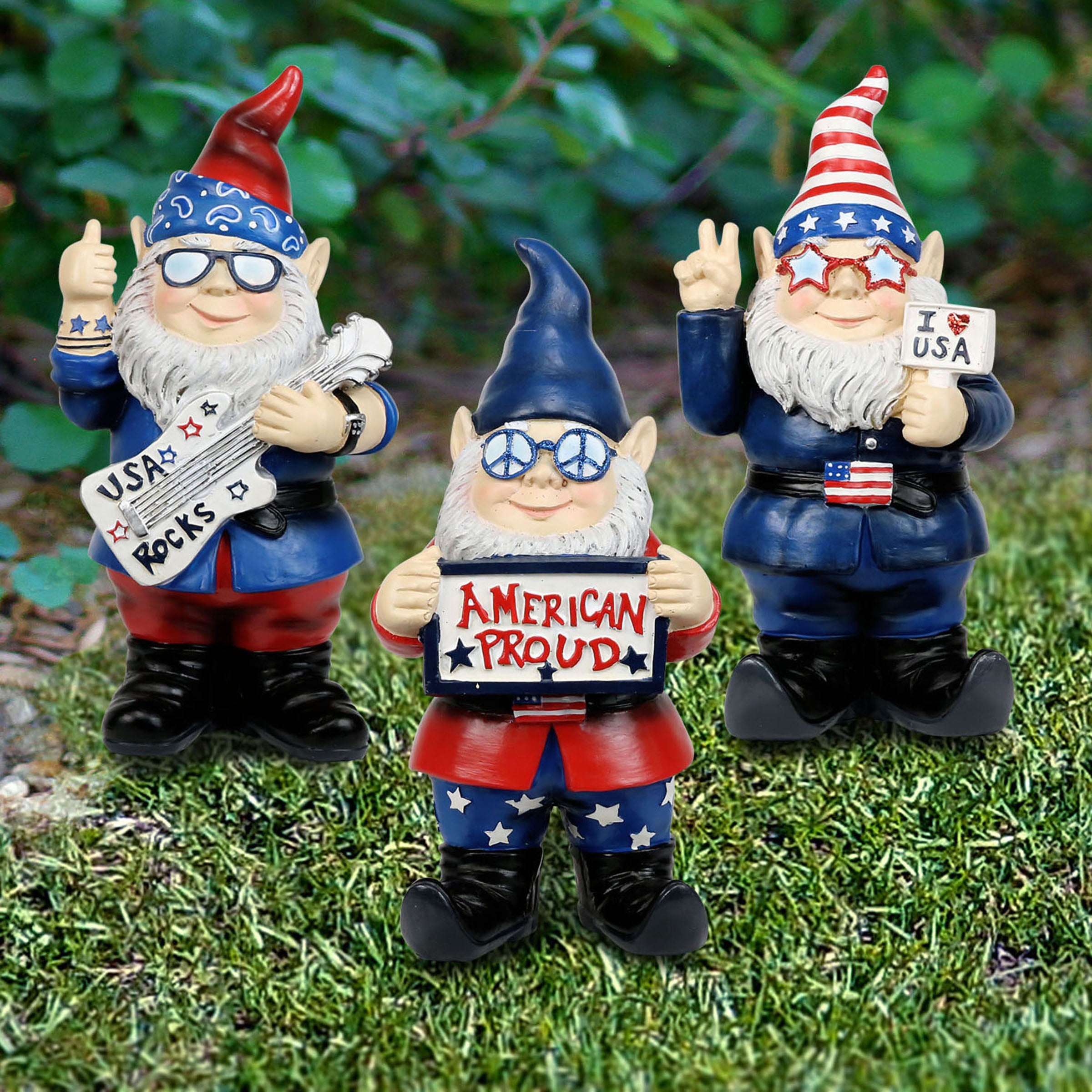 Gnome Patriotic Statuary - Assorted Tray Pack of 9