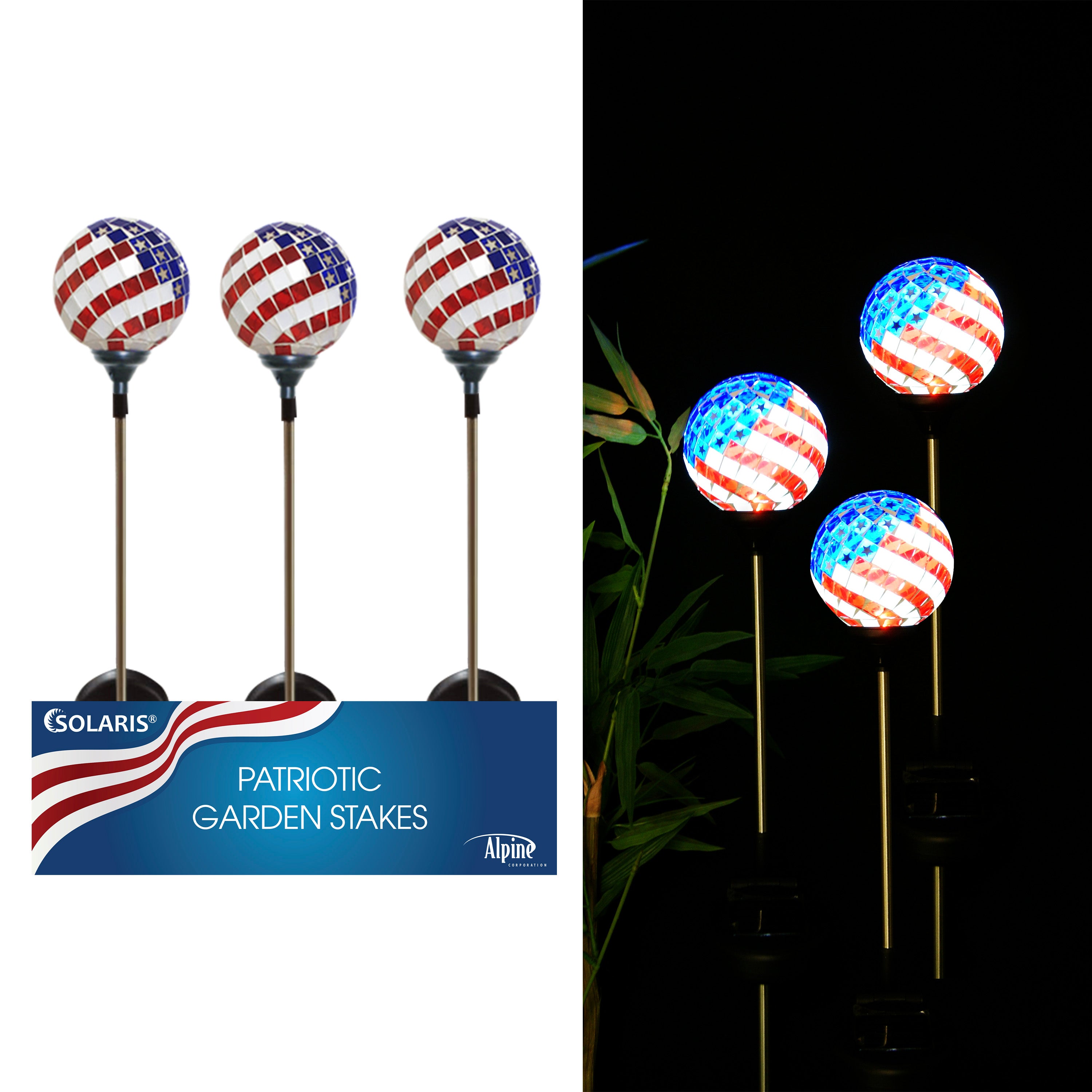 Solar Mosaic American Flag Garden Stake w/ LED Lights - 9