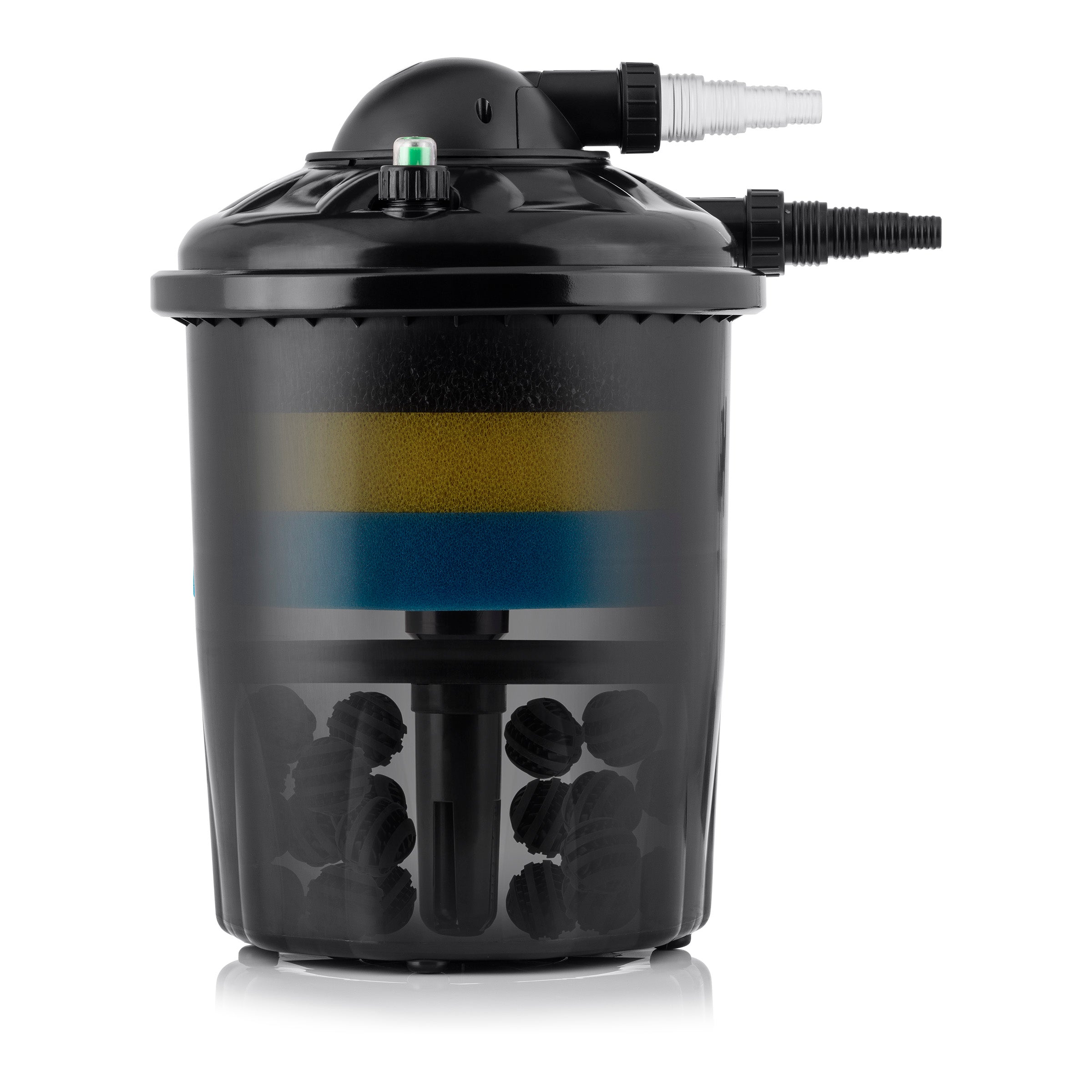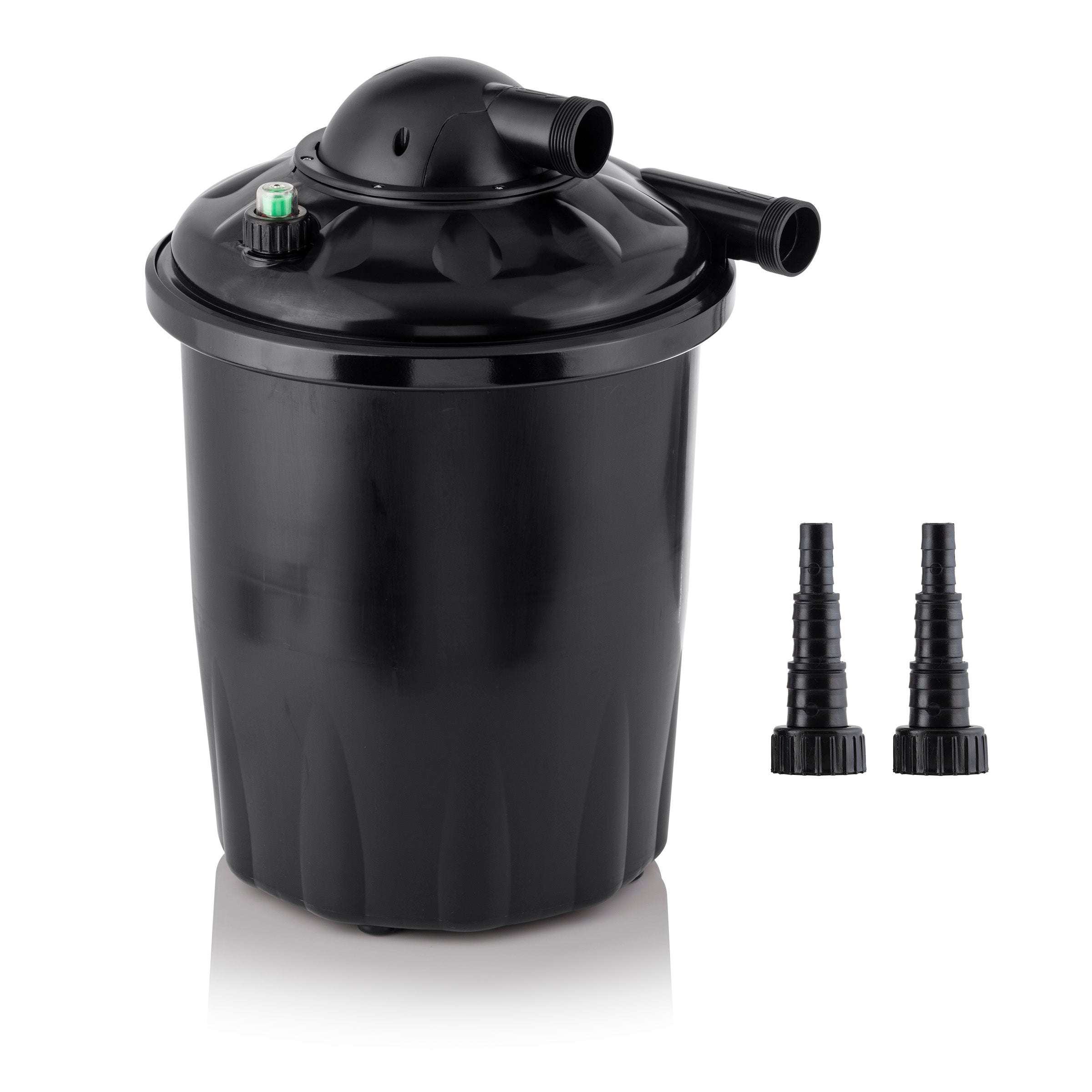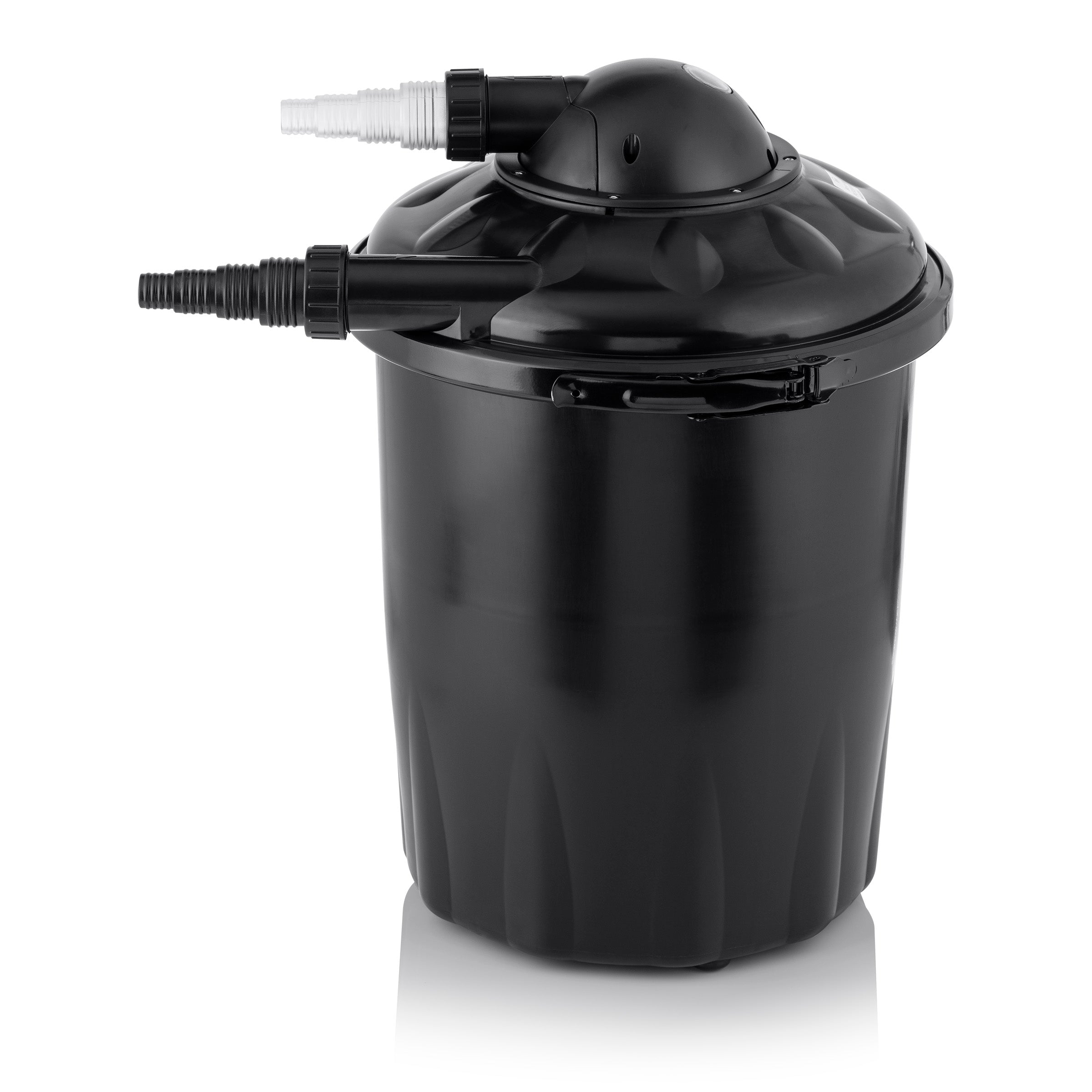 Maintain a clean and balanced aquatic environment with the Alpine Corporation PLF2000 21" Tall Bio-Pure Outdoor Pressure Pond Filter System, the perfect solution for crystal-clear water in ponds up to 2,000 gallons. Designed to support a thriving pond ecosystem, this multi-stage filtration system efficiently removes debris, sludge, and harmful particles while promoting the growth of beneficial bacteria for a naturally balanced water environment. Its advanced internal filter design ensures maximum water clarity and oxygenation, creating a healthy habitat for fish, plants, and other aquatic life. Built without a UVC light, this system focuses on biological and mechanical filtration for a natural approach to clean water. The compact pressure design allows for flexible installation above or below the waterline, while the easy-access lid makes cleaning and maintenance quick and hassle-free.