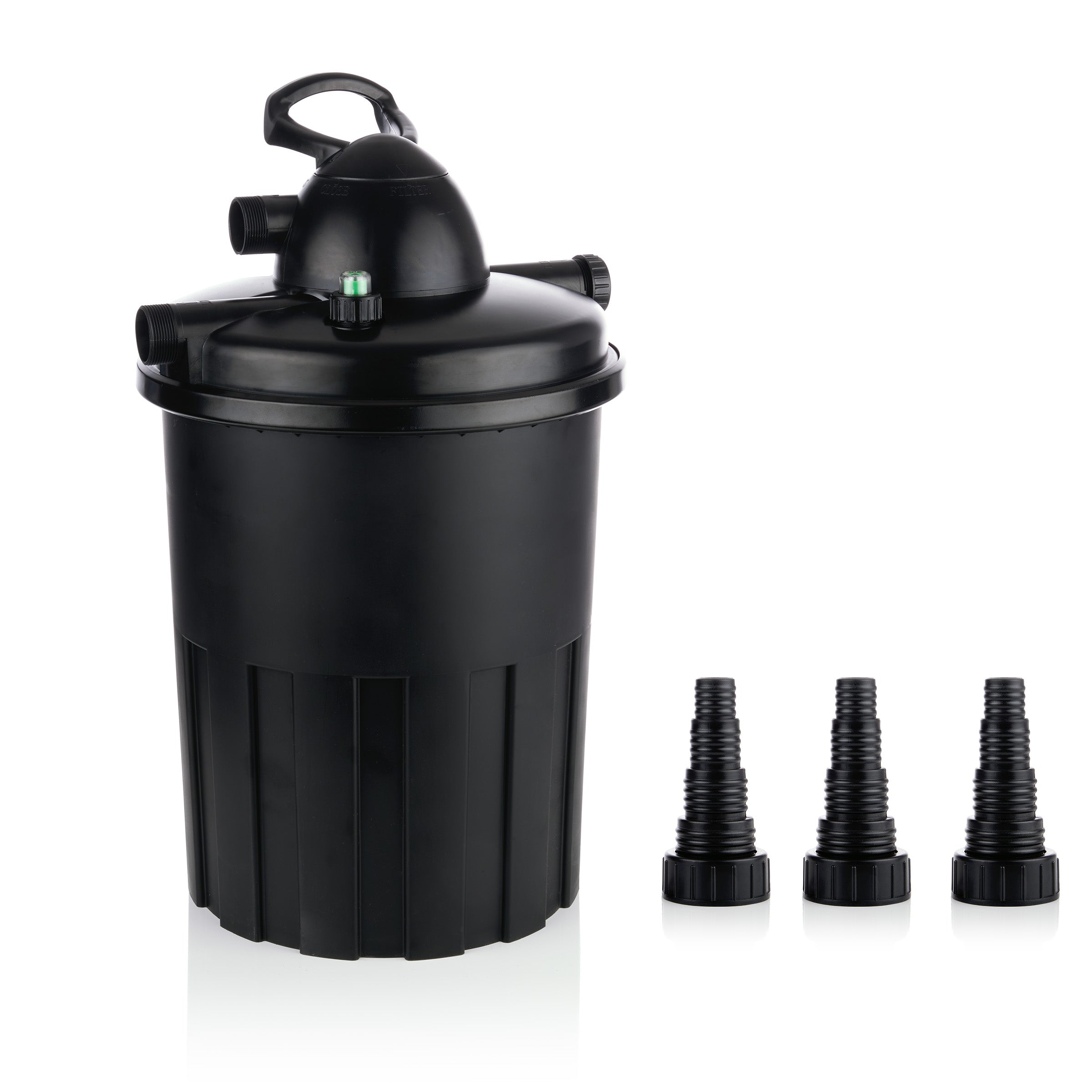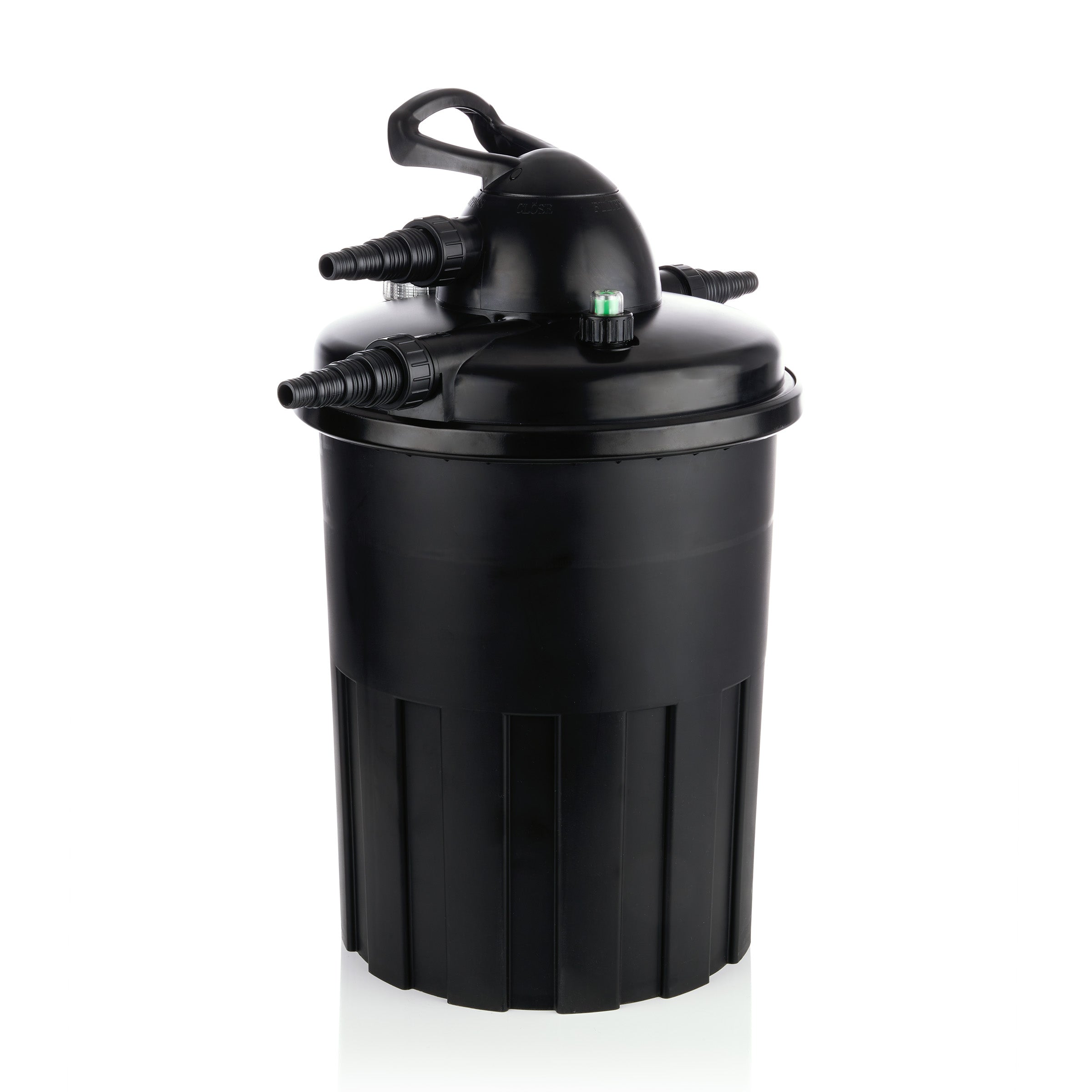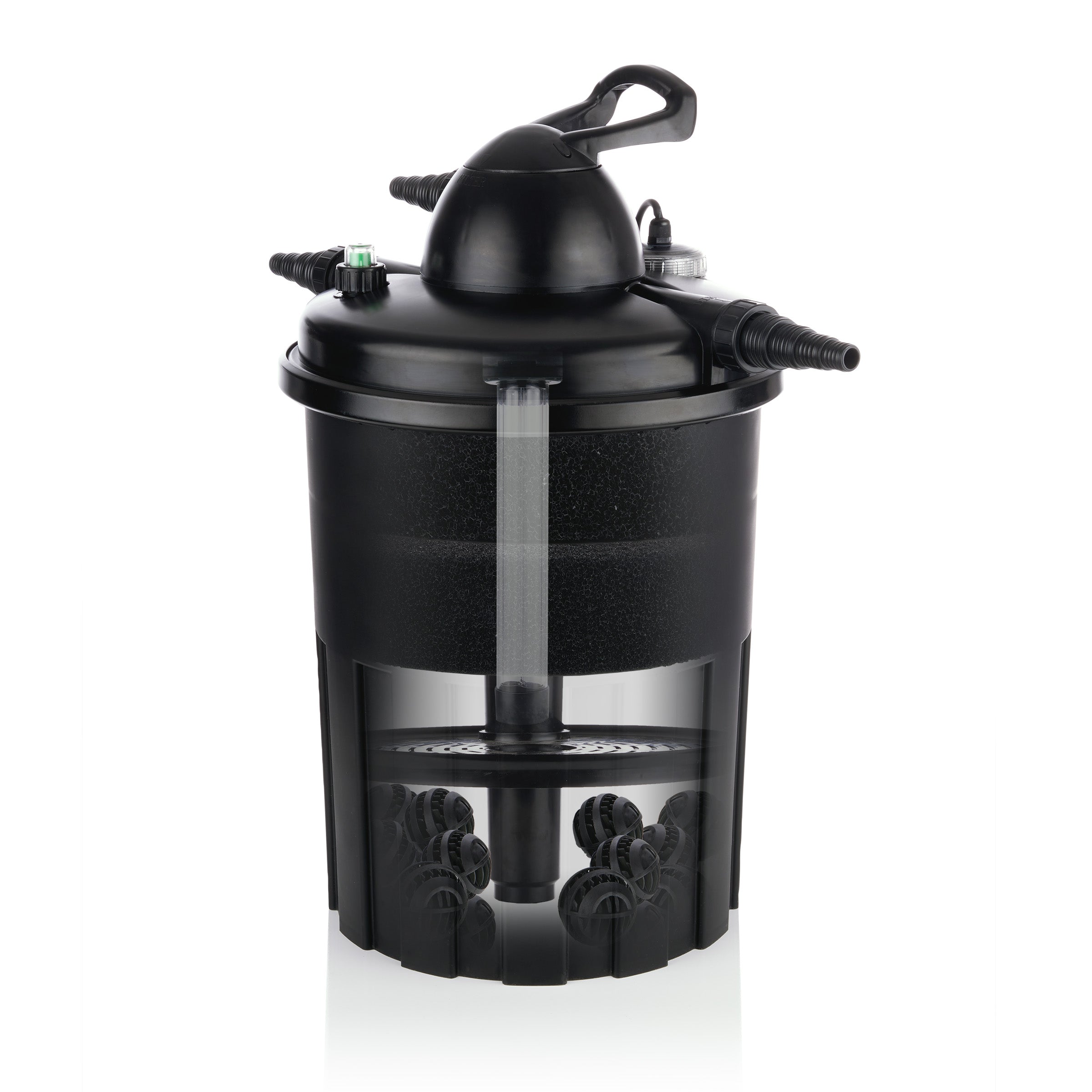 Keep your garden’s pond clean and safe with the Bio Pure Pressure Supreme Filter with 24W Bulb from Alpine Corporation. This outdoor pond filter uses a multi stage biological and mechanical filtration process that uses a unique filtering process to provide maximum filtration and clear and quality water for a healthy pond. The durable foam pond filter features a large surface to provide long lasting quality use and increased filtration. It naturally cleans pond pollutants and sifts out debris, while allowing good, beneficial bacteria to thrive in their natural environment. For added convenience, the foam filter utilizes a unique external pressure indicator. This cleaning indicator helps to notify you when the filtration system is properly functioning and when cleaning the filter is necessary. The filtration system requires no assembly and is easy to install. The discrete filter system measures 16"L x 16"W x 27"H, and is meant to be partially buried, and includes a one year manufacturer's Support from purchase date.