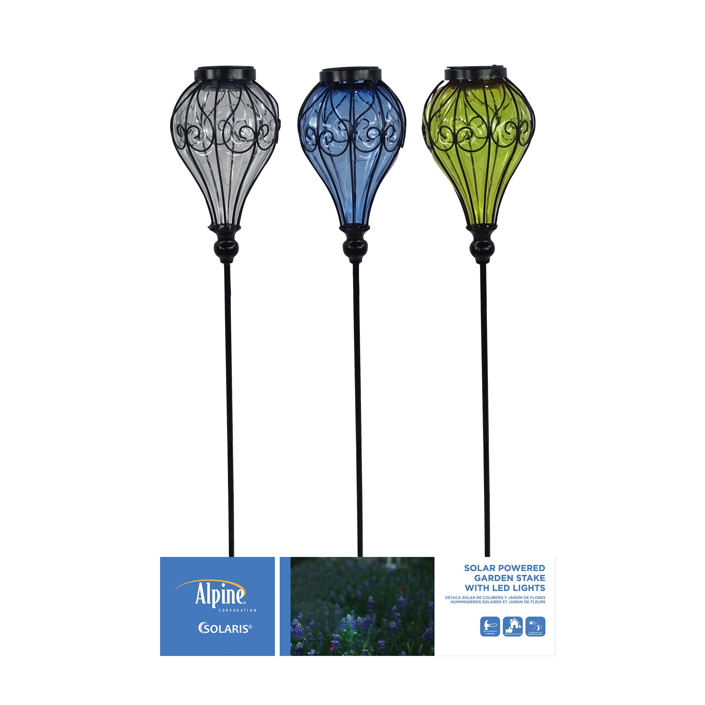 Alpine Corporation 13"L Solar Hot Balloon Garden Stake with LED- Asstd Display of 6