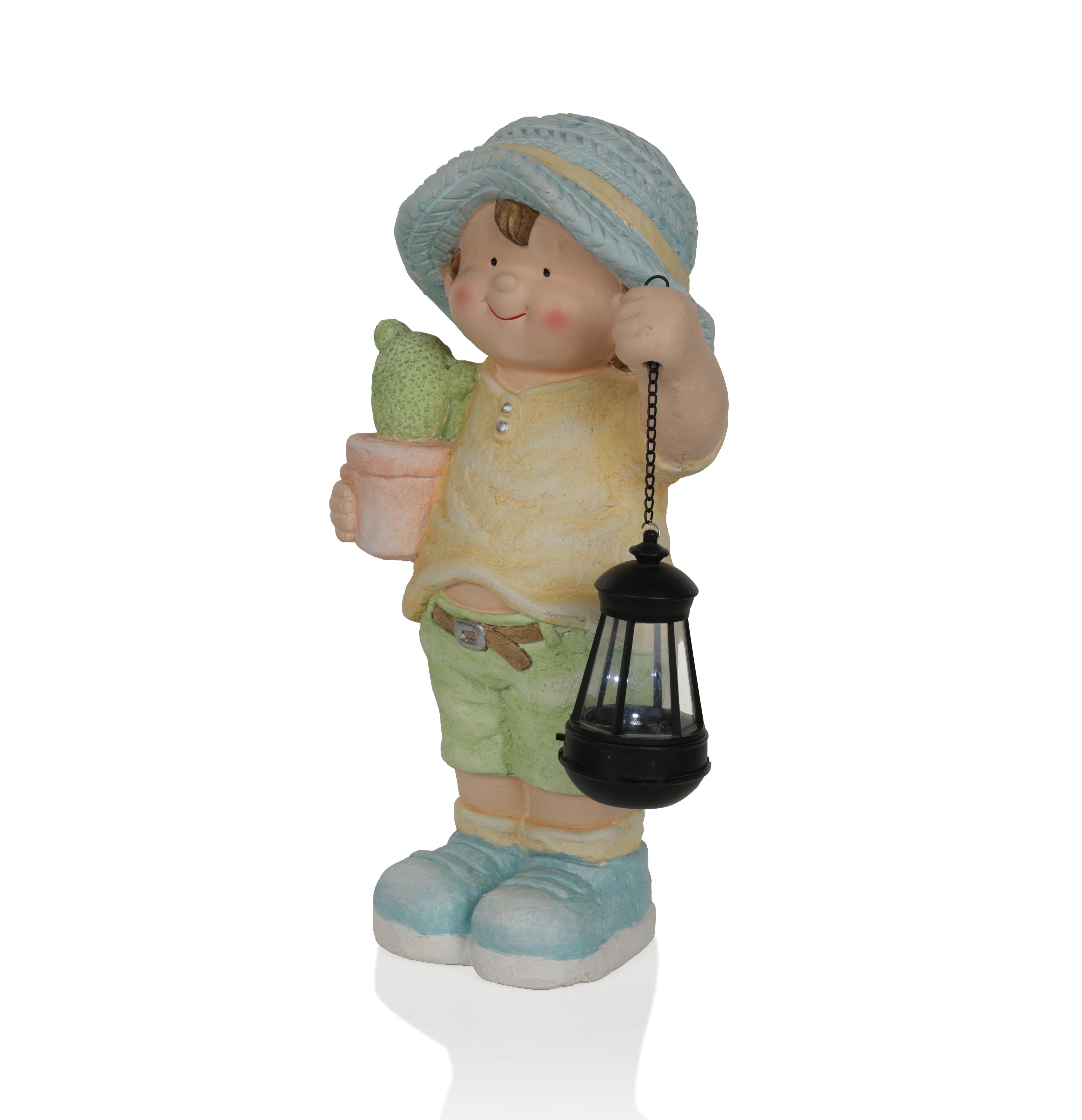 Solar Boy Statue Holding Lantern With LED Light