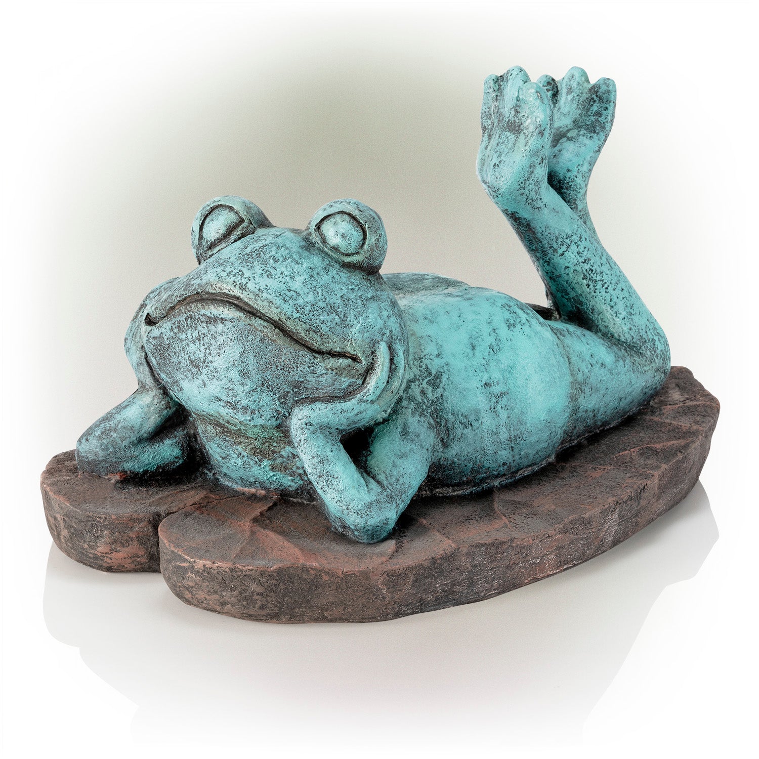 Add a touch of whimsy to your indoor or outdoor living space with the Alpine Corporation Sunbathing Frog Garden Statue Decoration! This cute lawn figurine features a happy sunbathing frog for a fun addition to your home's outdoor area. Constructed from resilient MGO, the yard decoration is weatherproof and rust resistant for years of quality use on your lawn or porch. With its intricate and animated details, this compact statue is perfect for your home's outdoor area. Add one or multiple statues to create an enchanted garden display. Wherever you place this Alpine Corporation statue, it's sure to bring whimsical joy to your home! The indoor/outdoor yard statue measures 10"L x 15"W x 9"H to fit almost any indoor or outdoor space and includes a one year manufacturer's Support from date of purchase.