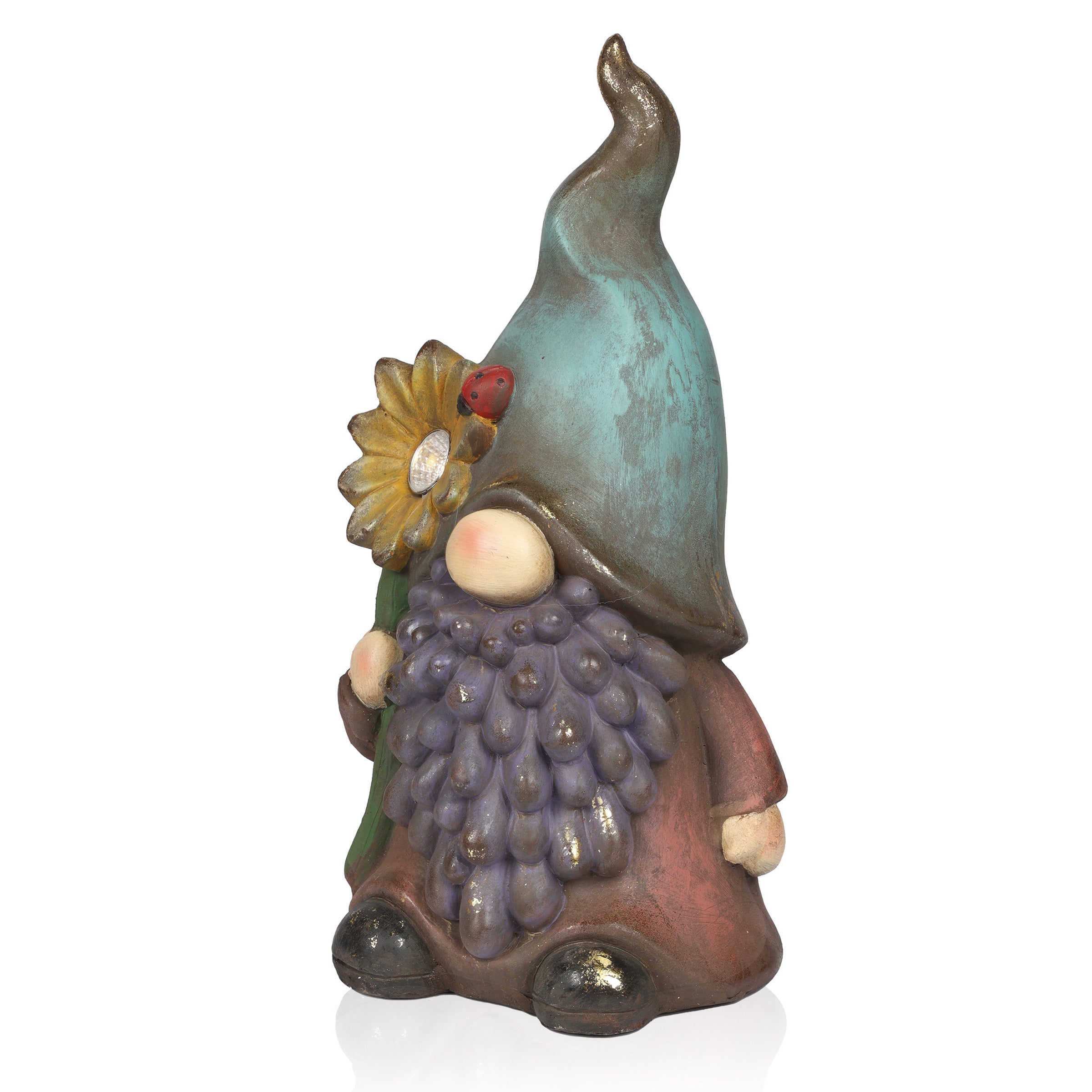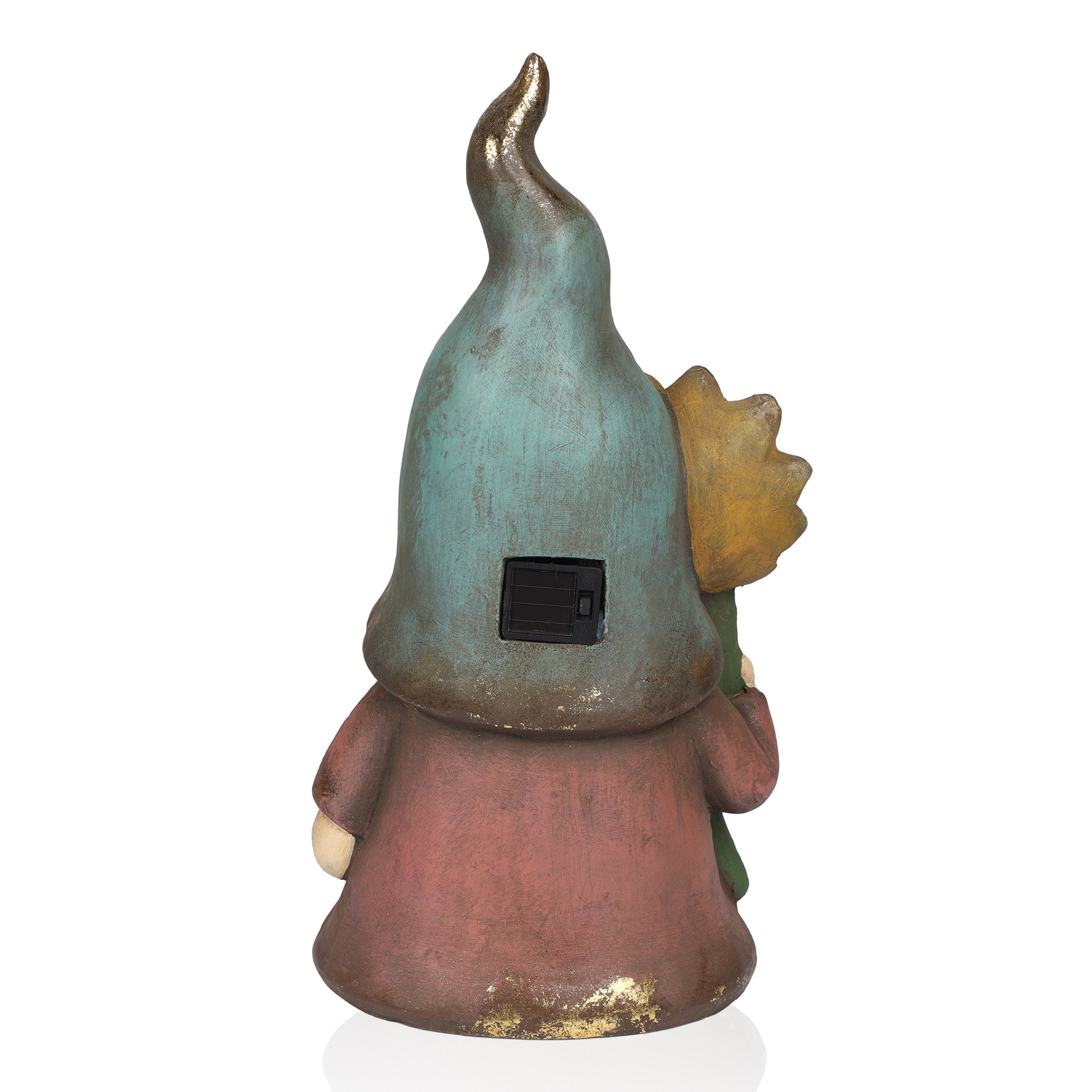 Solar Gnome Holding Flower w/ Turquoise Hat Statuary