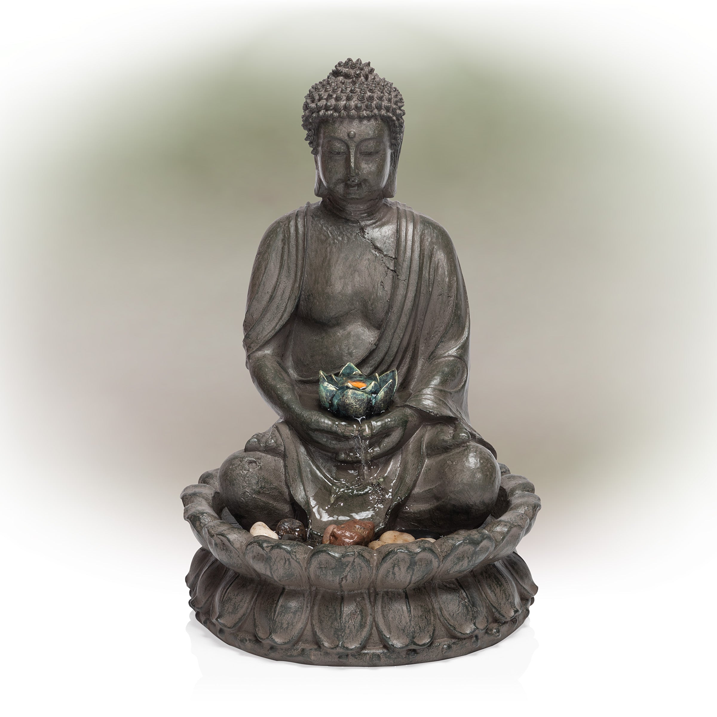 Buddha with Lotus Flower Tabletop Fountain with LED Lights